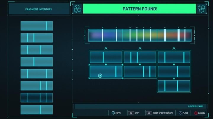 Как только решите три, в принципе, идентичные головоломки, проследуйте у другой станции, где вас ждет следующая мини-игра. Тут мы воссоздаем схему и определяем, таким образом, вещество. Просто перемещайте разные элементы в соответствии с образцом, и у вас быстро получится решить эту загадку.