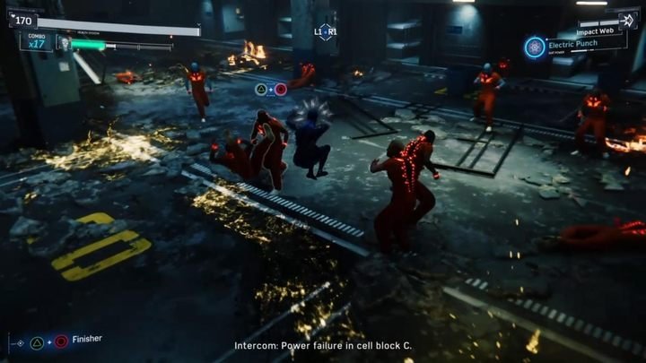 Когда окажитесь в другой части тюрьмы, вновь сражайтесь с преступниками. Расправившись со всеми, подойдите к двери и встретьтесь с Носорогом. С этих пор постепенно к бою будут присоединятся все ключевые злодеи вселенной Человека-Паука. Отправляйтесь в погоню, пока не встретите Скорпиона. Потом опять сражаемся с зэками.