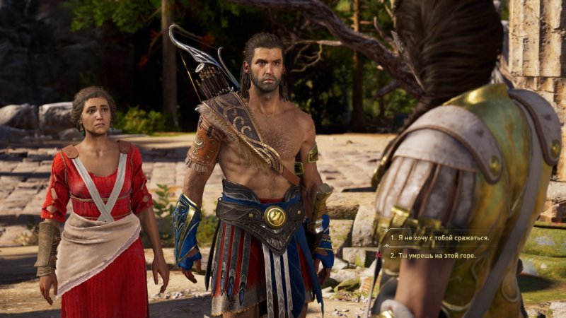 После окончания вступительного ролика вы появляетесь в мире и начинаете управлять непосредственным героем Assassin's Creed: Odyssey. На вас сразу же нападают головорезы, с которыми необходимо расправиться, используя знания о боевой системе, полученные чуть раньше. Когда бой завершится (он будет достаточно простым и быстрым), начнется диалог, в котором ваш персонаж столкнется с первой необходимостью сделать моральный выбор. В некоторых случаях принимаемое вами решение ни на что не повлияет, а в другом окажет непосредственное воздействие на концовку. Более подробно о том, какие варианты диалогов следует выбирать, мы рассказывали в предыдущем материале.