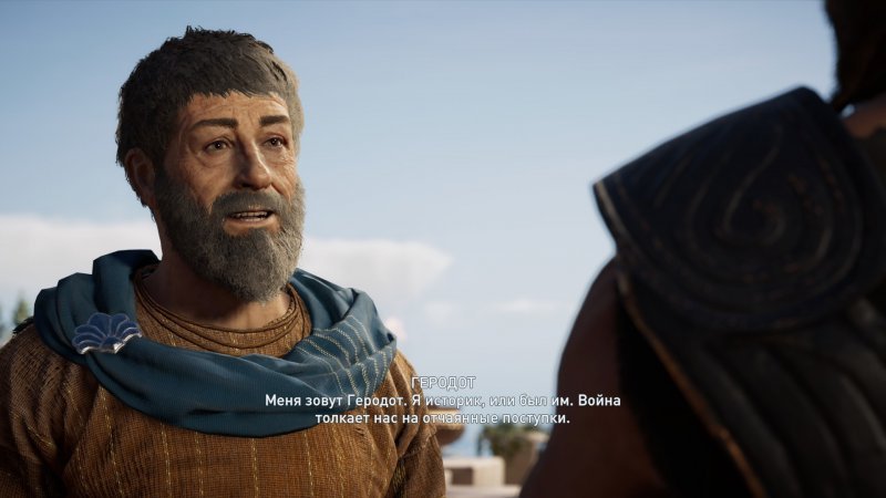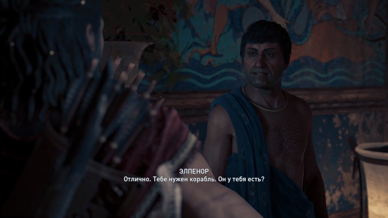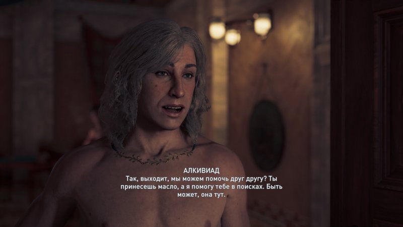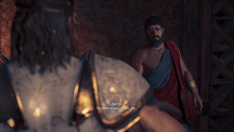 Дальше следует разговор с Арстофаном, в процессе которого выясняется, что нужно отыскать пропавшего актера по имени Феспис. В доме мужчины находим стражника из Афин, принимаем решение по поводу убийства или пощады НПС.